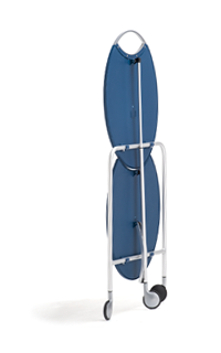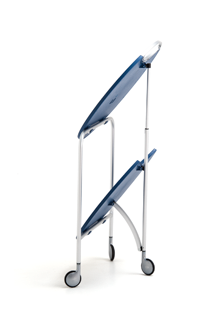 收起:后部支撑杆两轮着地,一只手扶住上层桌板,另一手握住手柄逆时针方向向上提。